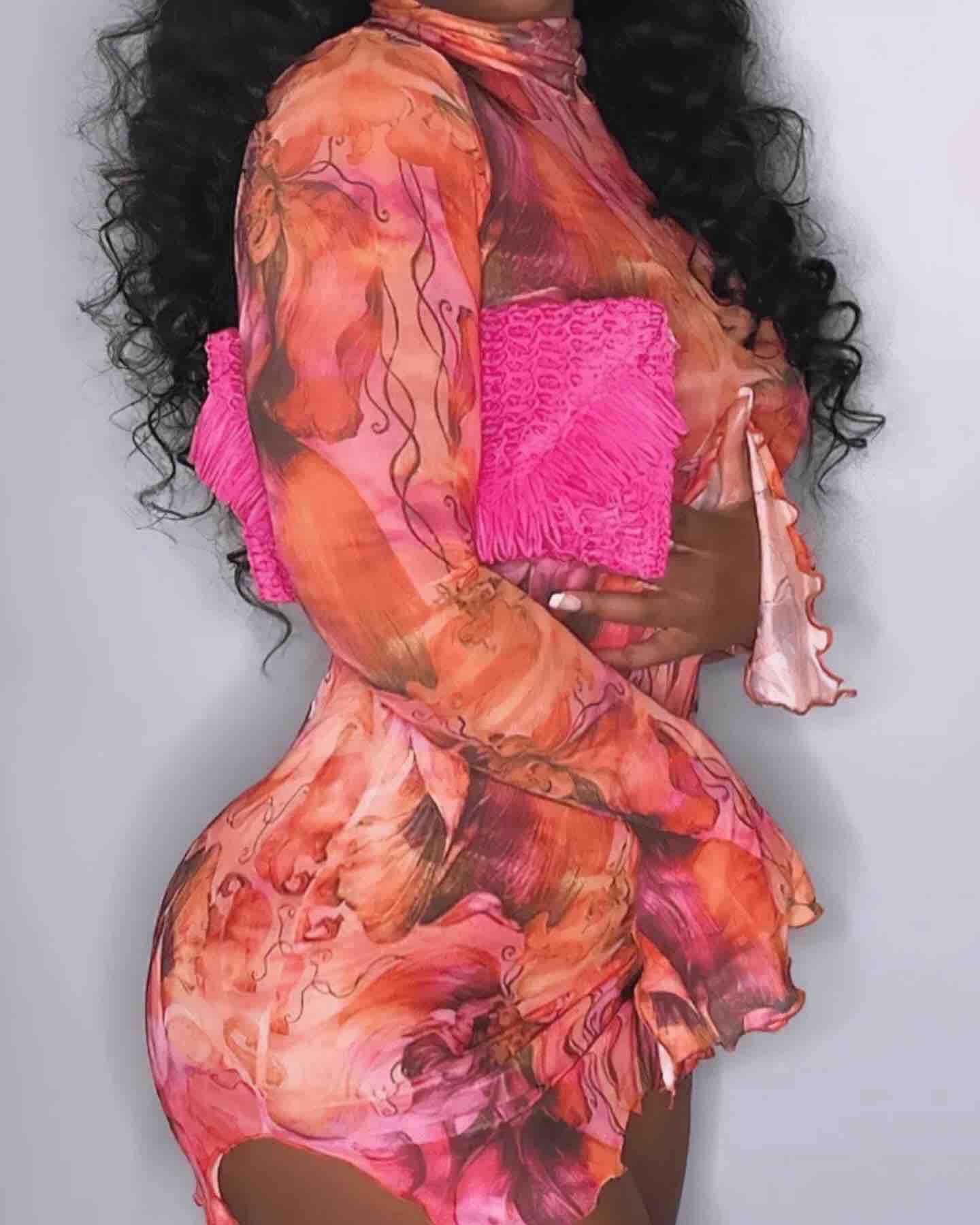 Date Night Multi Color Frill Trim BodyCon Dress